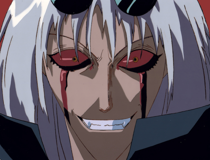 Our hero Alucard von Mosquiton is only part vampire, and to gain full vampire strength he requires fresh human blood. This cel shows up the first time that we see the character in Vampiric mode. This image of Mosquiton was shot close so it fills the entire screen.