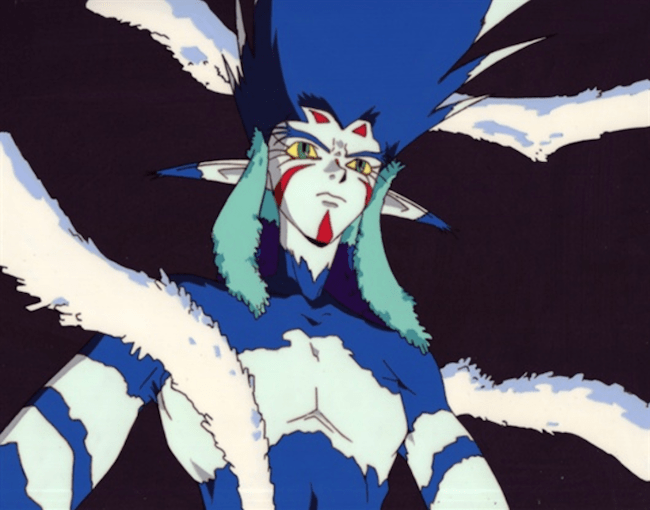 This is the White Ice-toothed Tiger God from the second season of Chou-Mashin Eiyuuden Wataru. When Wataru reaches the 5th level, he and his friends befriend a cat named Dana. It is later revealed that Dana is actually the Guardian of the level and had his memory wiped and his form changed. This cel is part of the henshin sequence when Wataru fuses with the power of the white tiger and Dana regains his Guardian form.