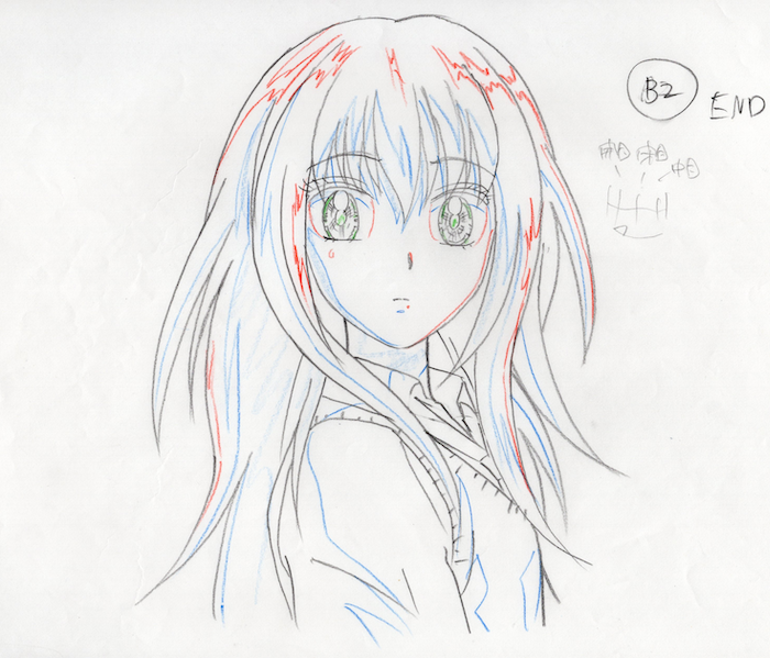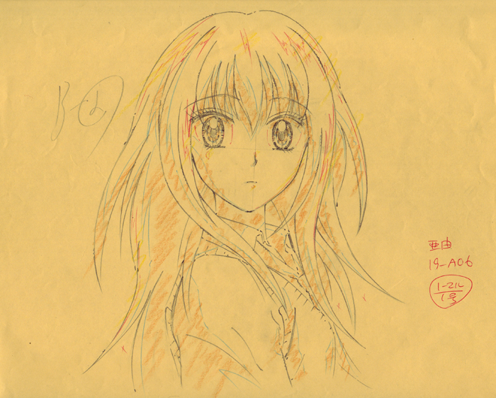 These are the three loveliest drawings of a package of 11 genga and douga of the character Ayu Tateishi from Ultramaniac. The series is a magical girl romantic comedy based on a manga by Wataru Yoshizumi. The TV series was directed by Shin’ichi Masaki with character design by Miho Shimogasa.