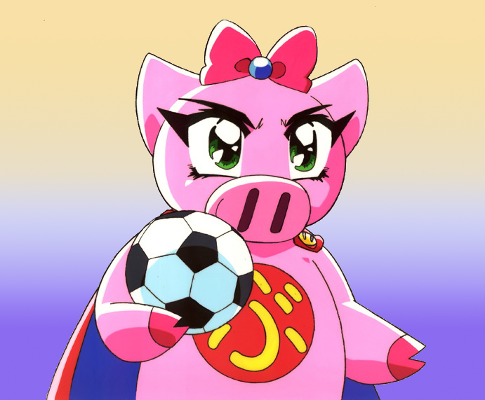 Here is a close-up of the mysterious pig with the soccer ball and amazing lashes and eyebrows that challenges Buurin to a contest.