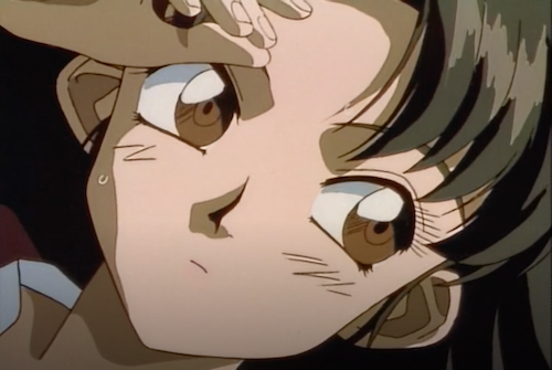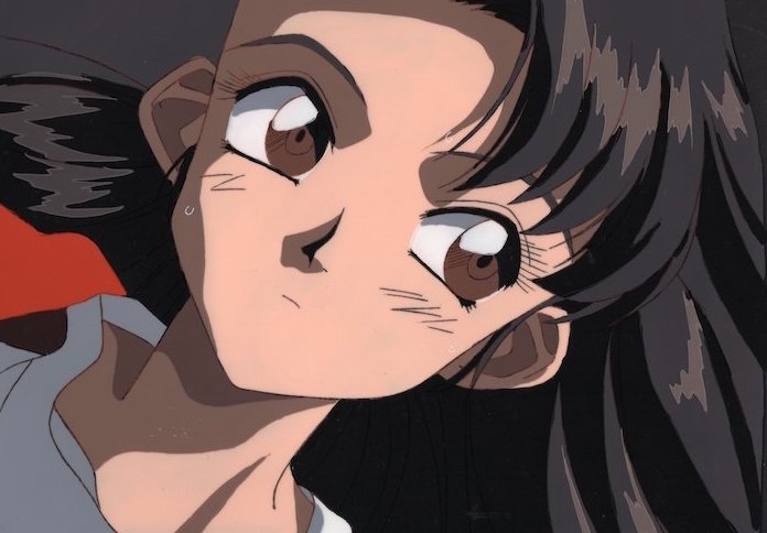 This is a lovely cel of Key’s childhood friend Sakura who is letting Key live in her tiny apartment in Tokyo. Sakura is lying on the floor under a fan, talking to Key about the idea of Key becoming an idol singer. There was also another layer with part of a hand at the top of the head to the left which was not included with this cel.
