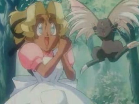 A favorite cel, this is AIC embossed, and in mint condition plus it’s super cute! The cel is from The Mihoshi Special OVA (alternatively titled Galaxy Police Mihoshi’s Space Adventure). Mihoshi and Ryo-oki have just spotted a gingerbread house in the fractured fairytale opening to the story. The 25-minute-long show was released in 1994 between seasons of Tenshi Muyo.