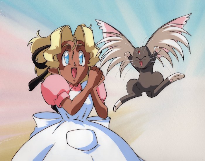 Since there was no background with the cel, I selected one I had that matched it in color and cuteness for a new scan.