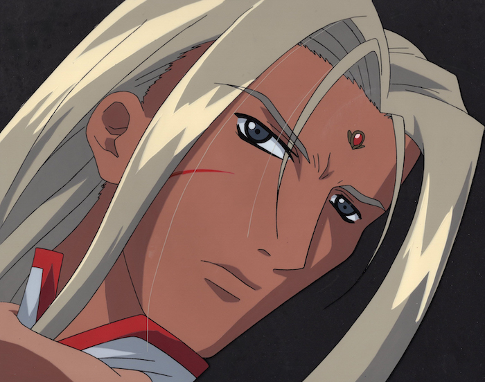 The cel below shows Meifon’s assistant Kosei escorting Lau and his daughter to safety during the rescue.