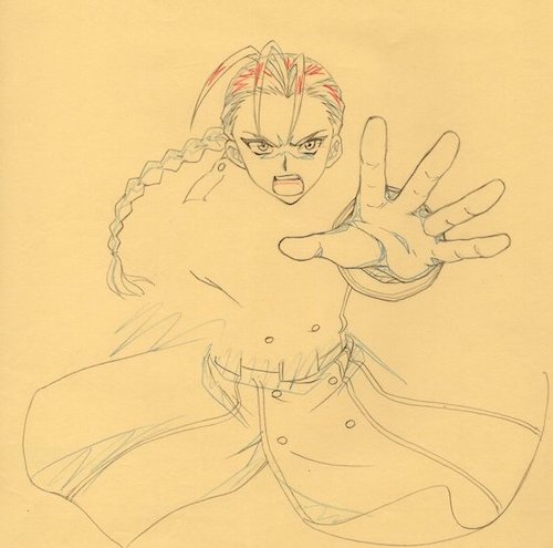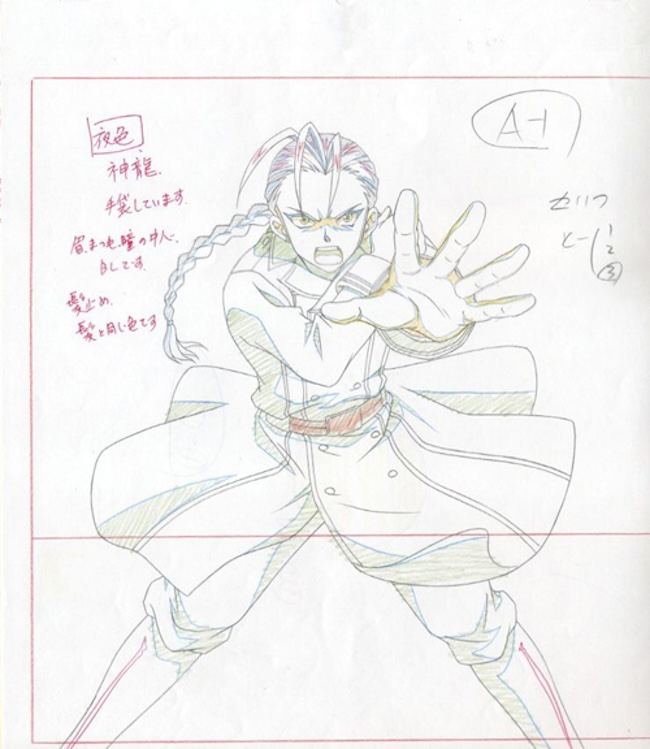 In addition to the 2 drawings here, The genga set also comes with additional layers of the coat and hair, flying rocks, and a glow around the figure as he activates his power.