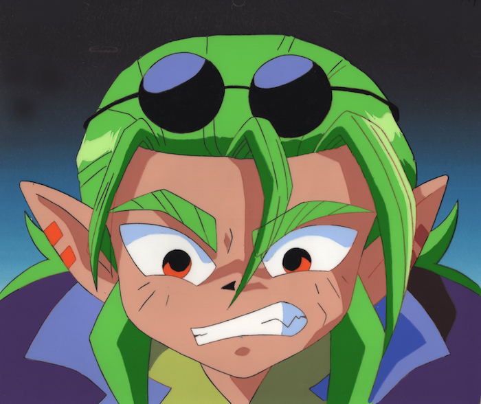 This cel depicts the little brother of Dolan and Doru and the youngest of King Dorogami’s children. Wataru meets Dodo in the very first episode of Chou-Mashin Eiyuuden Wataru. When he arrives, Wataru has no memory of his past as a hero there, but is rescued by his old friends Shibaraku and Himiko. They take him to the village of Soukaizan. Soon after, Dodo arrives and invades the village with his robot and reactivates a giant robot also there. Wataru and his mecha Ryuujinmaru defeat Dodo. Afterward, Wataru and his companions ride a rainbow and officially start their journey to rescue all of the good hearts of the people of the Mount Sokai.