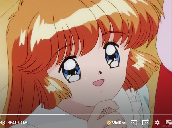 In episode 14 of Saint Tail, Ruby the Hedgehog has been learning to ride a tricycle. Unfortunately, she loses control, rolls down the stairs, and runs into Meimi’s father’s face. Her father, who is a magician, captures Ruby in a cluster of balloons, and as she rises in the air, Meimi can’t help but be amused.