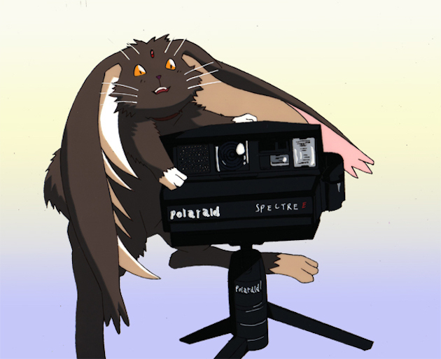 This game cel is another purchase made long ago from the AIC website. Ryo-Oki is clearly panicking as he attempts to balance on a camera attached to a stand not designed for the extra weight of a cabbit. (Note: while Ryo-Oki is a girl in the Tenchi series, In Pretty Sammy Ryo-Oki is a boy).