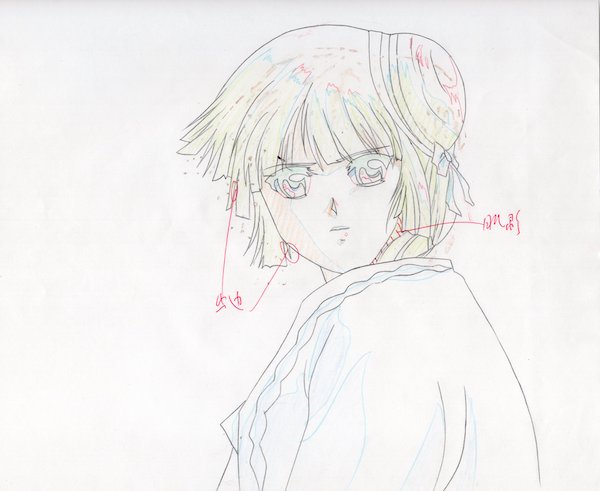 This is a stunning cel of Miyu looking over her shoulder as a gust of wind blows leaves past her. The cel came with not just one but 3 douga sheets folded in an AIC timing chart, which is rare for AIC cels. The C cel is the “wind” layer.