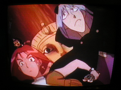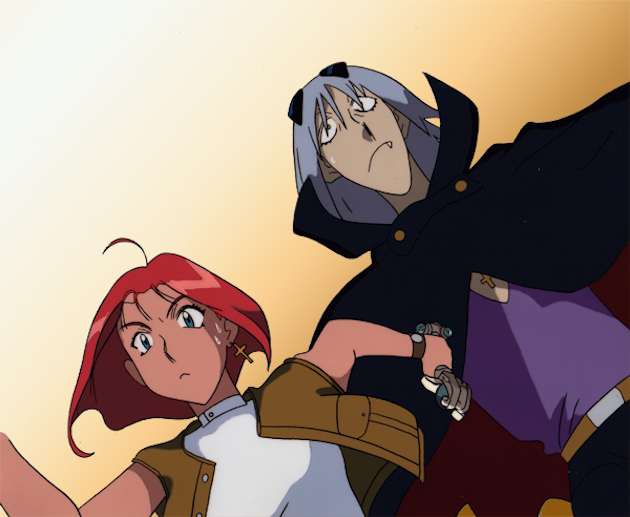 This is another cel from episode 3, inside the Pyramid in London. Inaho and Alucard are running to escape the Giant Sphinx and the Egyptian Queen. Inaho has the O-part in her grasp (but not for long).