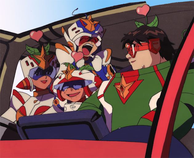 The car cel layers were not stuck to the other layers so those same layers were used with the end cels of the characters.