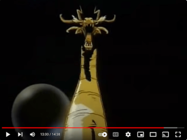 This is the golden dragon Ryujinmaru, who transforms into a mecha that Wataru enters in a beam of red light. Inside the mecha the dragon resides, and Wataru lands on the top of the dragon’s head and grasps the the horns on either side to take control.