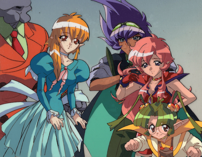 5 members of Noelle’s found family are united in this combination of 6 layers of cels. This includes all but the F-layer which was not stuck to the other cels. The characters are (from the left) Papa (missing most of his head), Mama, Gabriel, Sara, and at the bottom right, Ruka. In the opening, this sequence appears near the beginning, but they do not appear quite the way they are shown here.