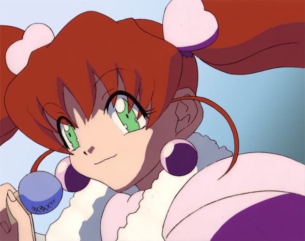 This is an unusual cel from Cyber Team in Akihabara of an image of Hatoko performing in her latest music video on a huge projection screen in Akihabara.