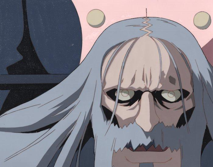 In this scene, Sangermaine is pushing Rasputan in a wheelchair (behind Rasputin is a cel of part of Sangermaine’s jacket) so no background is needed.
