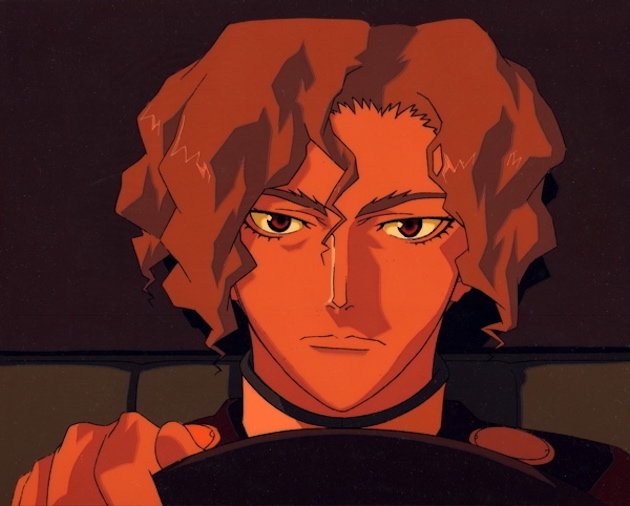 Wolf is at the wheel in episode 8, when he, Yuu, Nanna, and Nell go AWOL from the base at night. This little escape becomes a bonding experience for the 4 pilots. The background is a fully-painted cel layer. Wolf’s eyes are painted on the B cel.