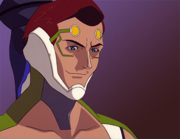 A close-up of Verucchio (the anime misspells his Italian name as”Veruchio”) from near the end of episode 12. He tells Yuu and Wolfe that he can connect his brain to any computer system. He has almost finished joining his mind to the base’s computer.
