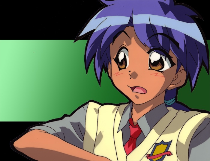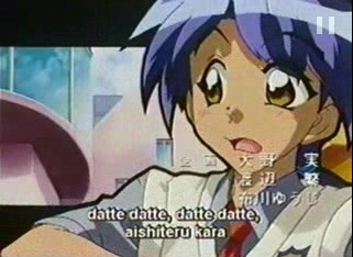 This is a close-up of Yuusuke reacting to Noelle’s flirtatious behavior. The cel shows up soon after the exercise cels from the opening. The figure has a thickly painted outline.