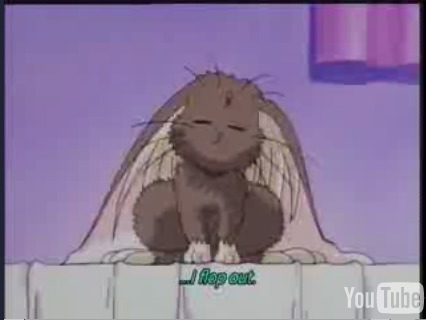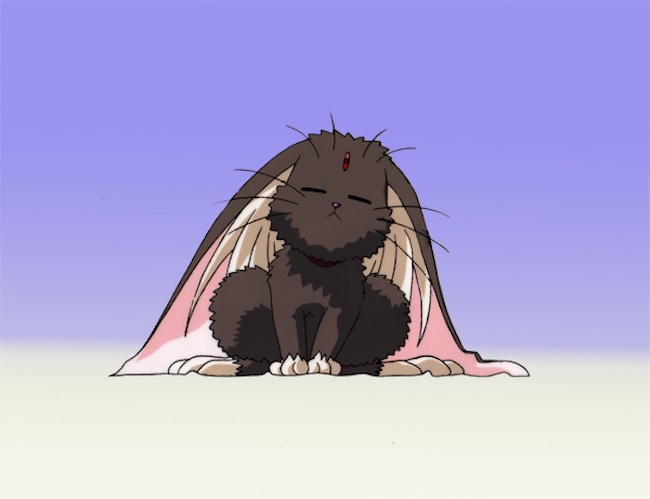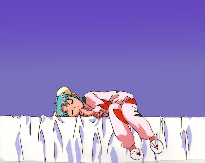 These two cels show up early in the opening to Magical Project S. Sasami falls asleep on her bed. The second cel shows Ryo-oki about to do the same.