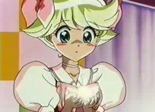 In Step 10, Noelle finds a little winged creature under a bush. She adopts it as a pet and names it Bunbun. Here Noelle is holding Bunbun, her face illuminated by a strange glow that suddenly begins to emanate from the creature. (See screencap below)