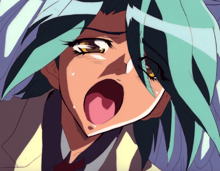 One of the exceptional things about Tenshi ni Narumon is that, while the series boasts a large cast, most of the characters develop along the way, and several reach their own personal climactic point in the story where they make an important realization. This scene is Mikael’s turning point, when he finally realizes he has been wrong, swallows his pride, and asks for help in a desperate situation, not for himself, but for everyone else. This cel is lovely. The painting fills almost the entire cel sheet.