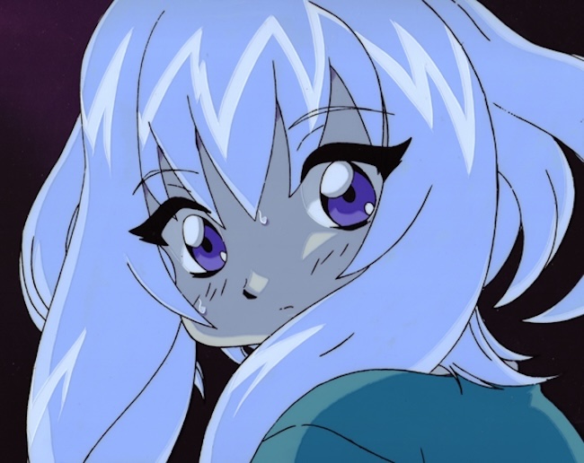 Tsubame Otori is spending the night at Hibari’s house. This is the first time she has seen what life as part of a family is like. As a result, she is too excited to sleep. This cel shows her lying awake in the dark mulling over her new information. She has no understanding of friendship or home life.