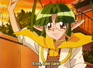 This is a lovely cel of Ruka with the original sunset background. In photocopied sketches included with the set, she raises her arm to wave in this scene. The top cel contains her arm, jacket side, and one side of her collar. A screencap of Ruka with the raised arm is included. The scene shows up at the end of Step 19, as Ruka says goodbye to Eros.