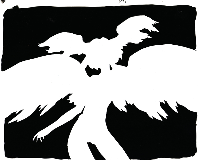 Finding this cel was a surprise! This is an opening cel of the winged woman. She somewhat resembles a blue woman in the anime. There are two cels, one with the figure and the other an effect cel. There is a superimposed layer of transparent feathers over the final scene (see screencap).
