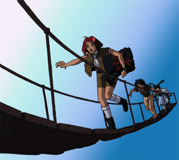 The cel below shows a related cel of Yuki and Hono following her across the rope bridge.